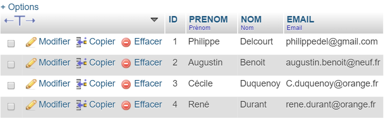 Les caractéristiques de connexion se trouvent dans le fichier constants.php (nom du serveur de Bdd, nom de la bdd, nom d’utilisateur, mot de passe).